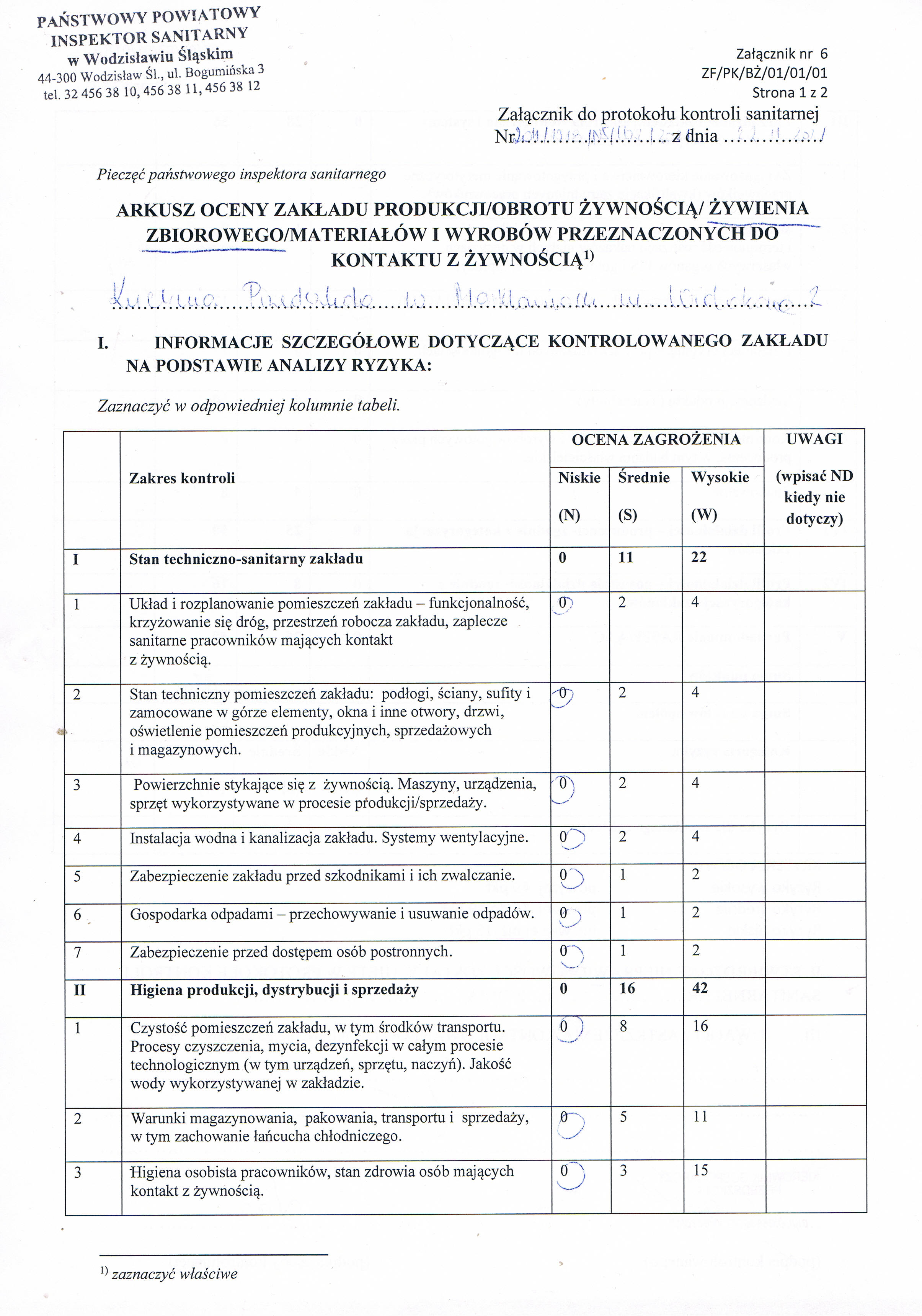 Plik zawiera Protokół Kontroli Sanitarnej. Wielkość pliku wynosi 259KB.